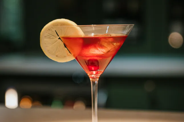 Method: Pour one part gin and two parts of Dubonnet into a small wine glass. Add the half lemon wheel to the mixture, then top with two perfectly proportionate ice cubes, sinking the lemon into the cocktail.