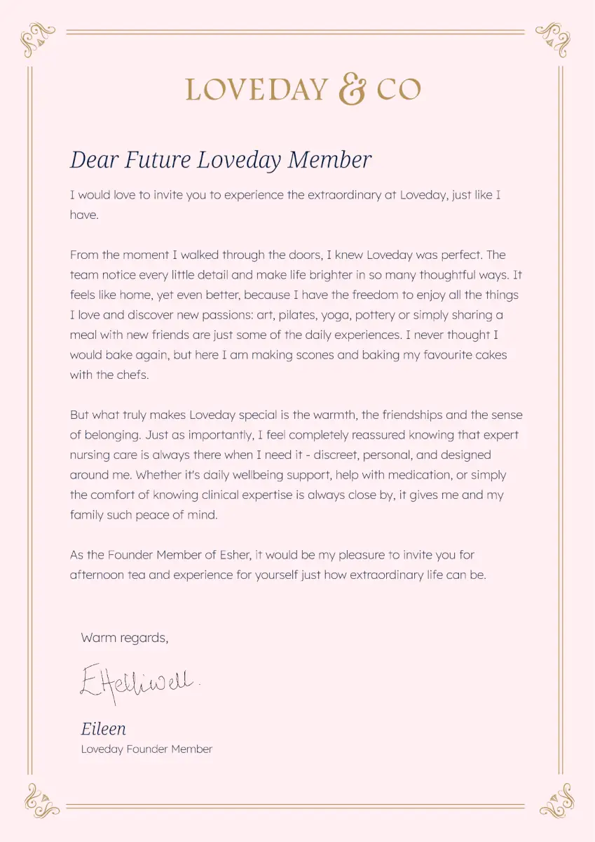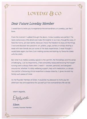 When Eileen first walked through the doors of Loveday Esher, she knew she had found something extraordinary. What began as a search for comfort soon became a journey of rediscovery, of joy, creativity, and connection. In her own words, Eileen shares how Loveday transformed her daily life into something truly special.